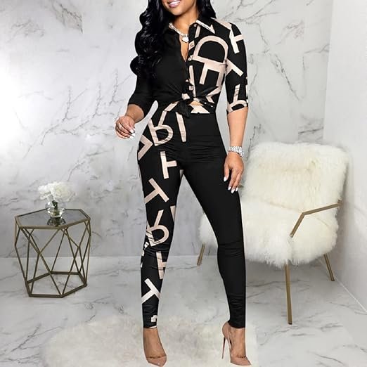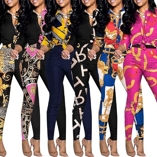 - Floral print 2 piece outfits pants sets for women., Two ways to wear, Pair with leggings and tie front for a casual daily look.if you like sexy, you can tie the front or put it down, shirt collar, front buttons, elastic waist trousers, high waist trouser suit, High waist casual long pencil pants, About the floral long sleeve 2 piece outfits women the “Floral Print” is random, we couldn’t ensure the position of floral print on each dress, but they are definitely made of same pattern fabric.